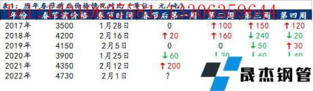 截至1月25日,貴陽市場主流建築鋼材價格4730元/噸,較2021年春節前價格高出380元/噸,幅度達8.7%,為近年來春節前最高水平。2021年國慶之後,在國家宏觀調控下,原燃料價格幾近腰斬,帶動鋼價走弱,疊加房地產不斷暴雷,需求不及預期,短短半個月時間貴陽建材價格下跌近1300元/噸,跌幅達22.4%,隨後在金融、基建、冬奧會等利好刺激下逐步修複,春節前鋼材價格持續偏強,而全國限產不斷,本地電爐企業於12月初基本停產減產,供應端壓力較小,全國庫存處於較低位置,冬儲政策不及預期,大部分無縫鋼管廠無冬儲政策,僅資金政策給與貿易商,商家普遍冬儲意願較差,節前無縫鋼管廠拉漲更是讓貿易商對節後價格不容樂觀,同時終端抵觸高價情緒愈發強烈,整體觀望情緒較濃。據曆史數據來看,2017年以來,除去2020年受全球公共突發事件影響鋼價持續走弱,其餘年份春節後貴陽建築鋼材價格前兩周上漲的概率達50%,前兩周下跌概率為0;春節後前三周上漲概率達50%,前三周下跌概率達50%;春節後前四周上漲概率達50%,下跌概率達25%。整體來看,節後鋼價偏強運行概率較大。