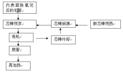 C(或重新預熱到此溫度)的芯棒,經輥道和運輸鏈到潤滑站噴塗石墨進行循環使用。經噴塗石墨後的芯棒,由運輸鏈送至預穿前設定位置。如更換新芯棒時,需在芯棒預熱爐內將其預熱到100±30