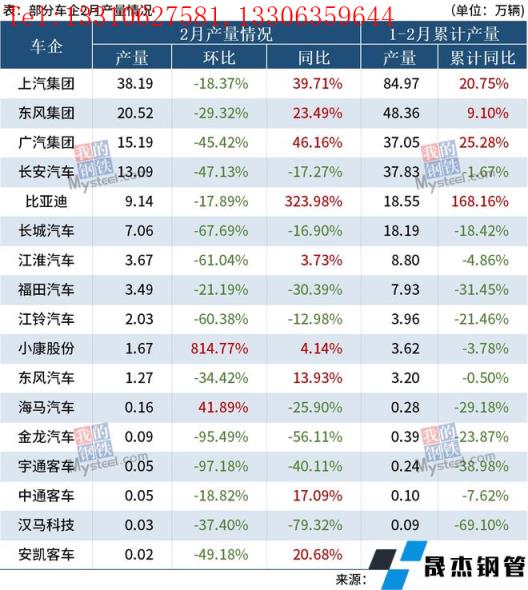 2月上市車企產銷量出爐,排名前三位產量同比大增