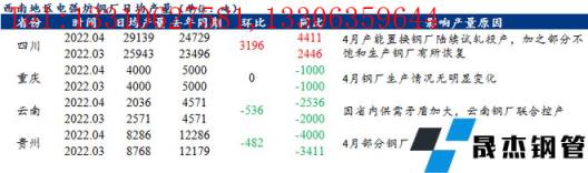 4、貴州地區4月電弧爐無縫蜜桃视频成人APP鋼管廠家日均建築蜜桃视频成人APP無縫鋼管產量為8286噸,環比減少482噸,降幅5.50%;同比減少4000噸,降幅32.56%。4月檢查組進駐貴州,貴州地區開展安全大檢查,部分電弧爐無縫蜜桃视频成人APP鋼管廠家生產受到影響,加之建材價格低窪,廢鋼價格堅挺,無縫蜜桃视频成人APP鋼管廠家延續虧損,停產檢修較多,產量環比小幅下降。