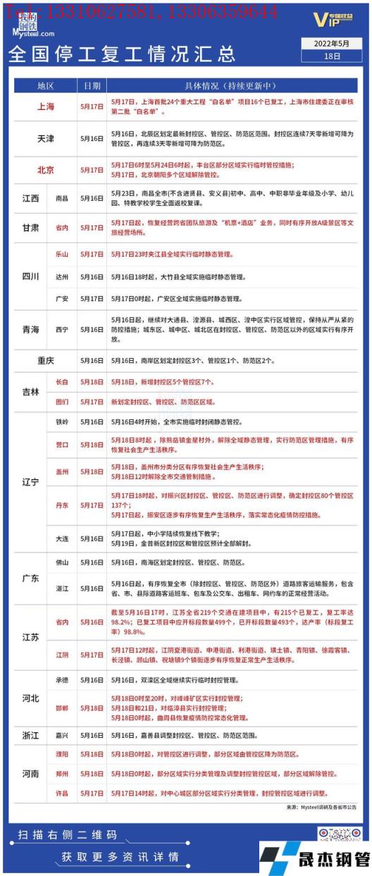 疫情影響丨全國停工複工情況匯總(5月17日)